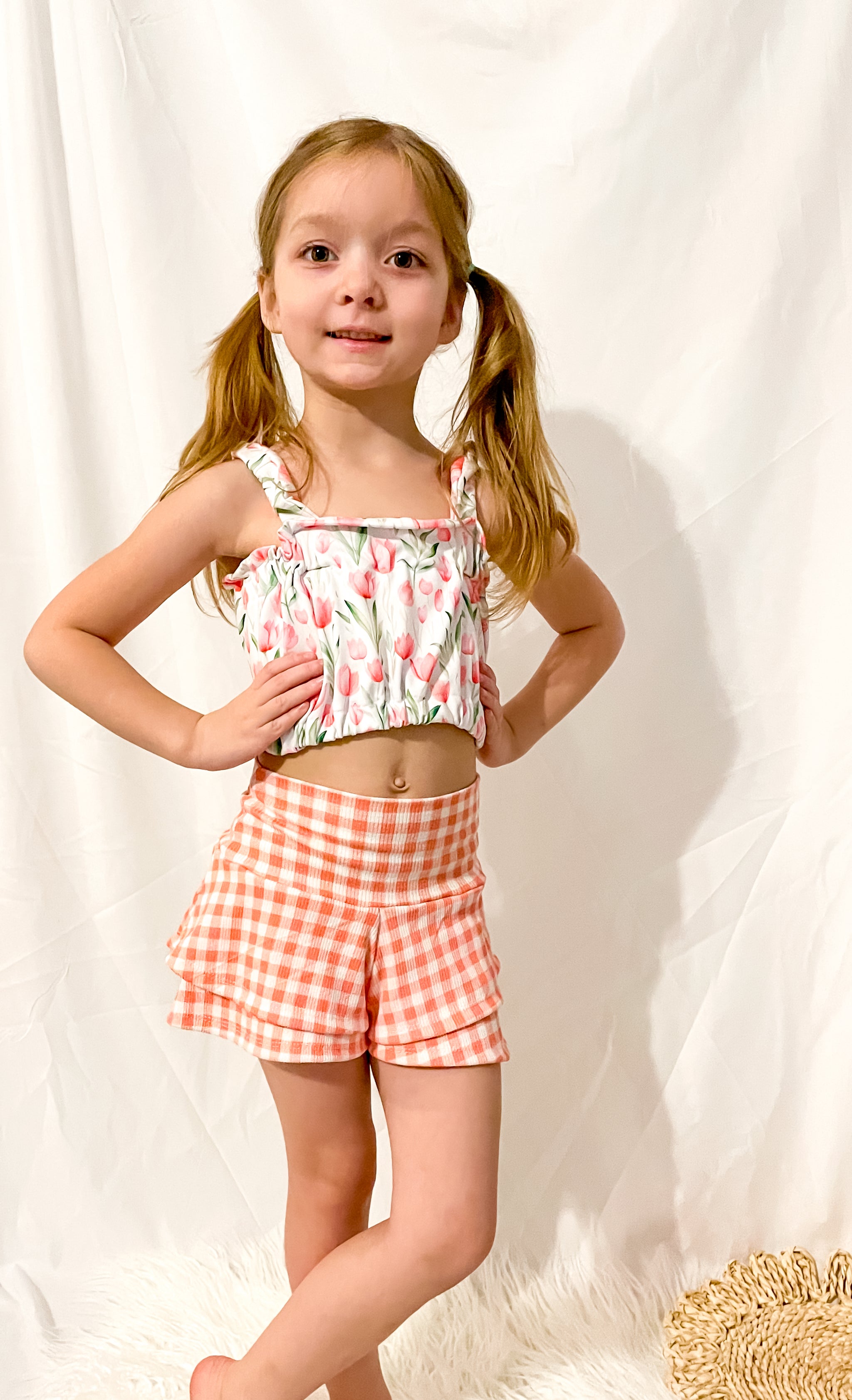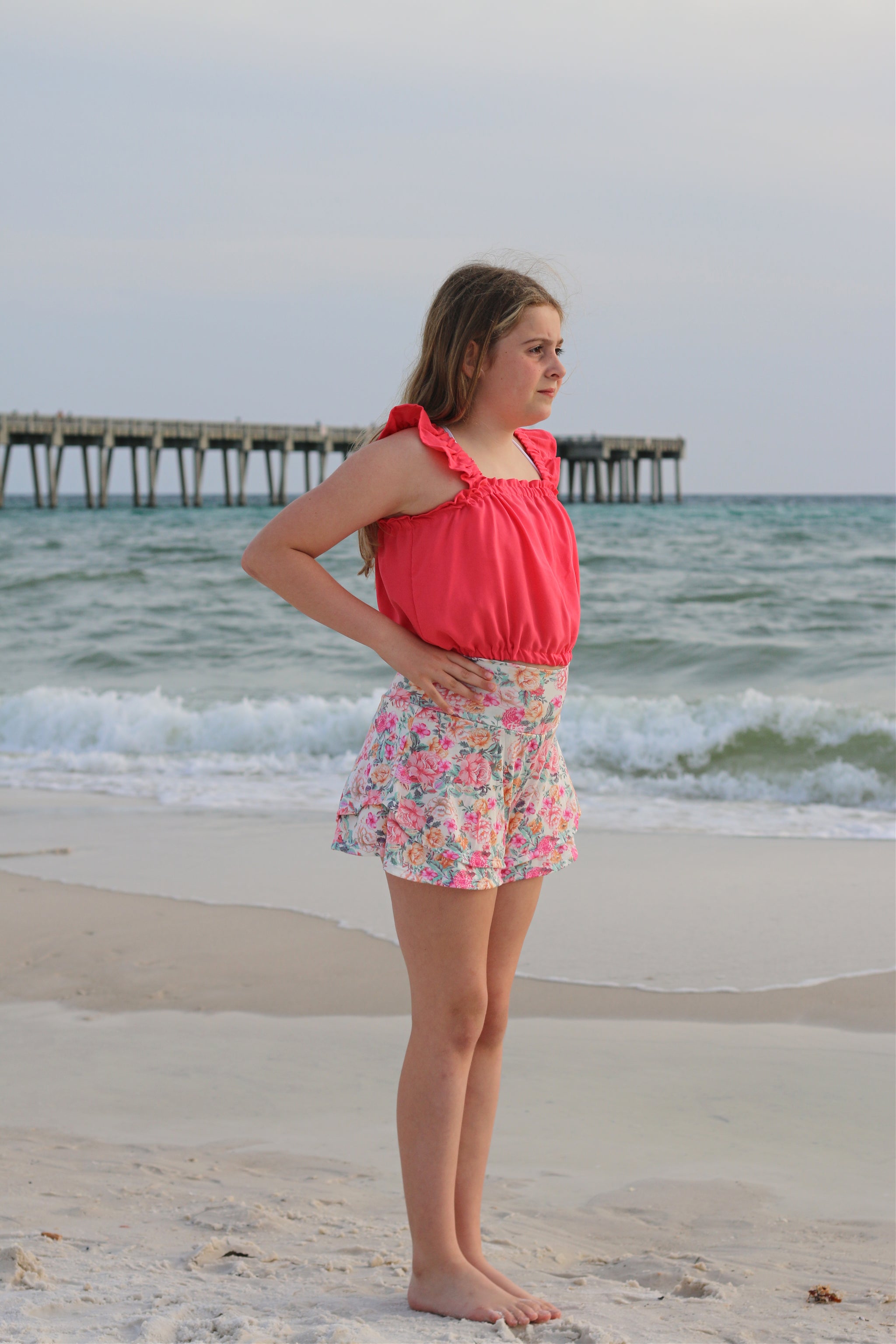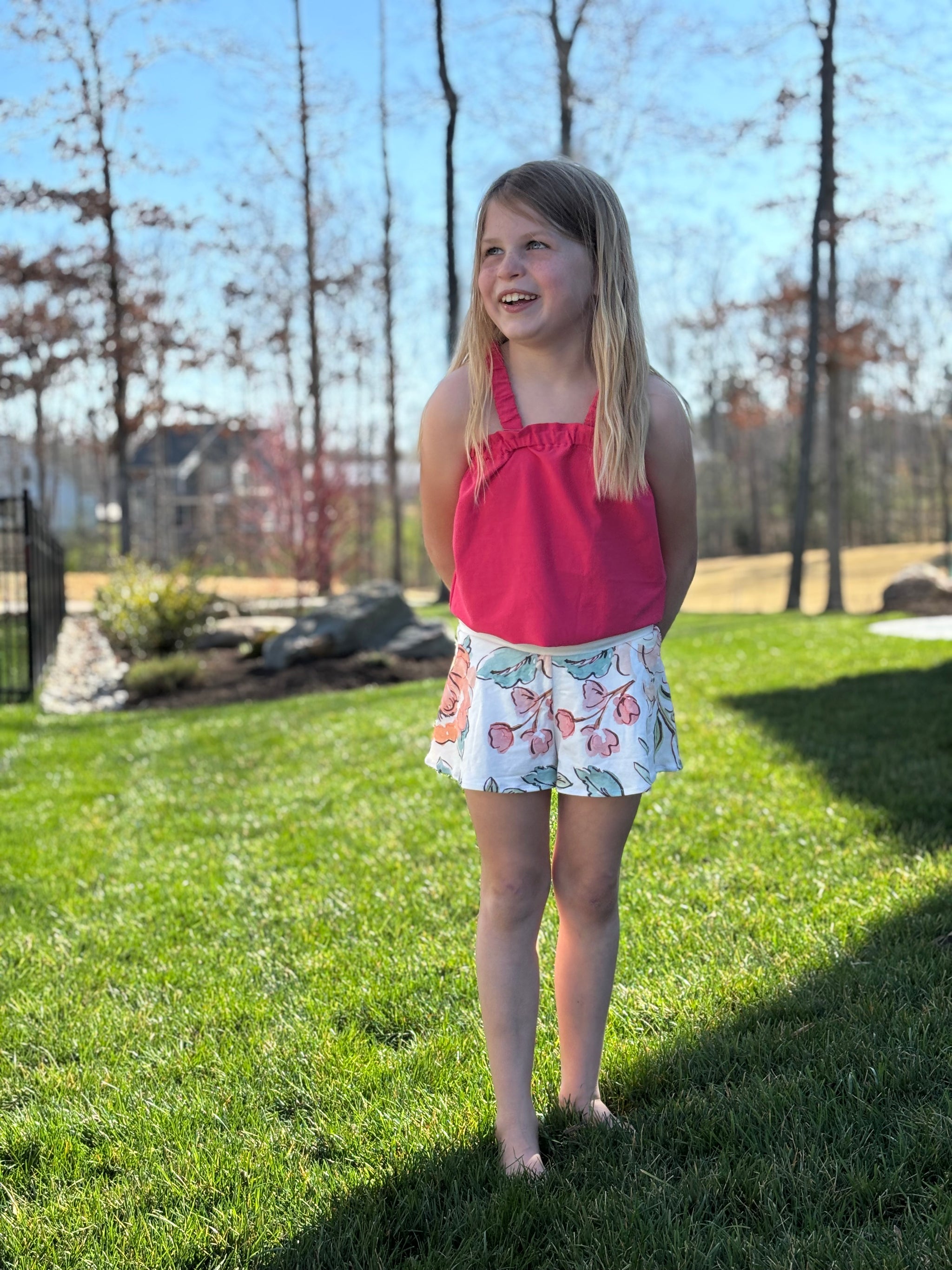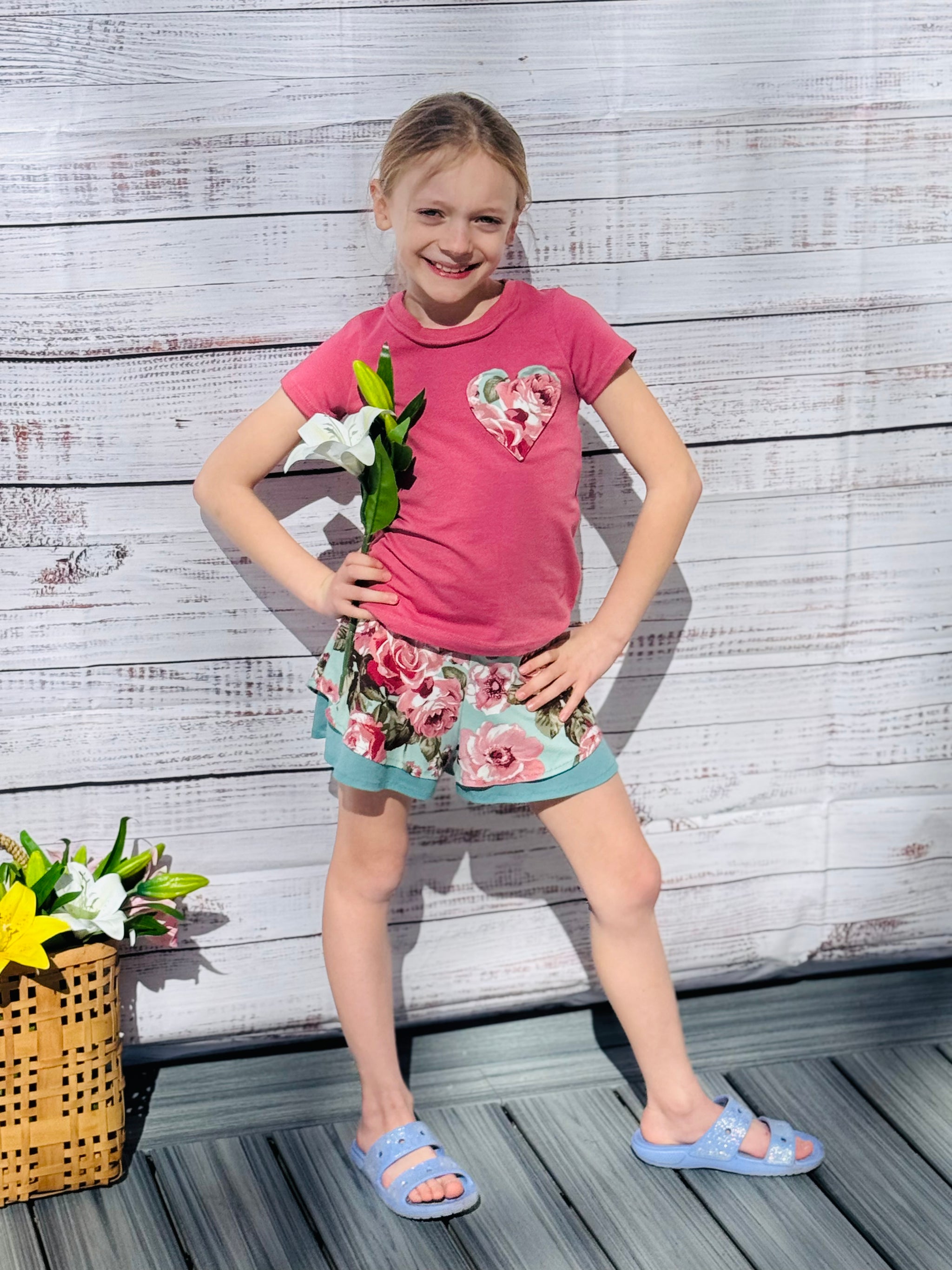 Elevate your child's everyday wardrobe with these beautiful double layer shorts, designed with a flowy silhouette and built in undershorts. Or they can also be made as a single layer, perfect for activewear. This pattern was designed with knits in mind; however, bonus woven pattern pieces are included. Mix and match with your favorite tanks, crops or tees or pair it with the Isla Top pattern for the ultimate summer outfit.