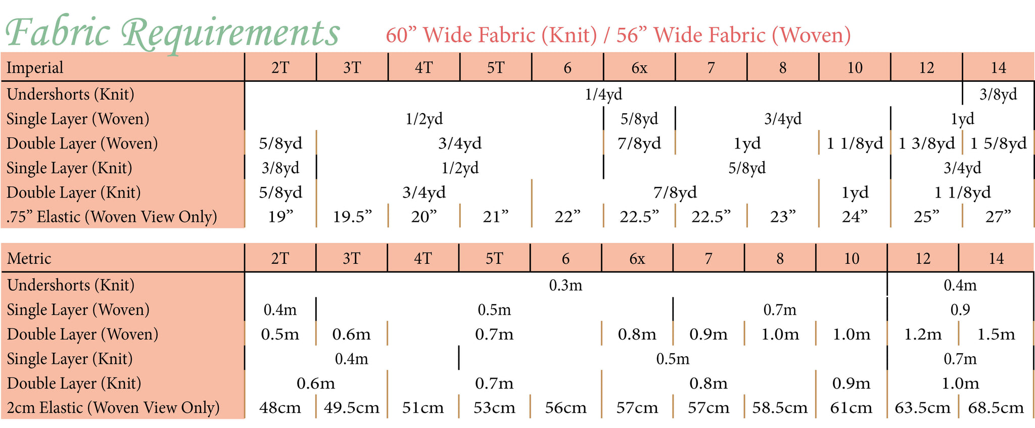 - Separate pattern pieces for knit or woven fabrics