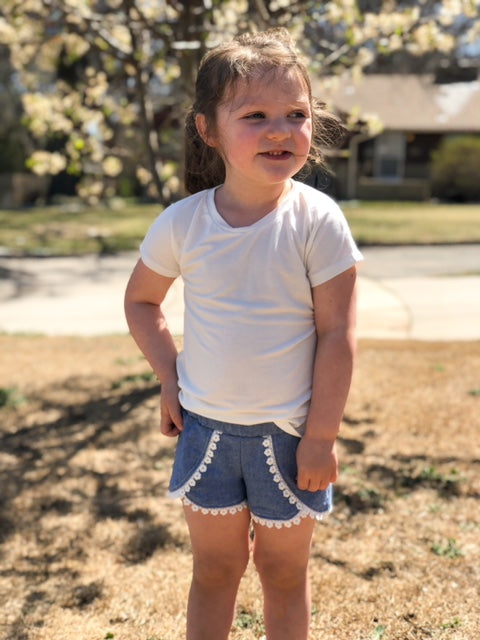 A soon to be summer staple for your little one, the Coachella Shorts are low-rise and feature an adorable trim detail -- there are so many different trim options that you can get a unique look each time you make them. Just change up the trim and voila!! These perfect-for-summer shorts are trendy, comfy and so much fun!