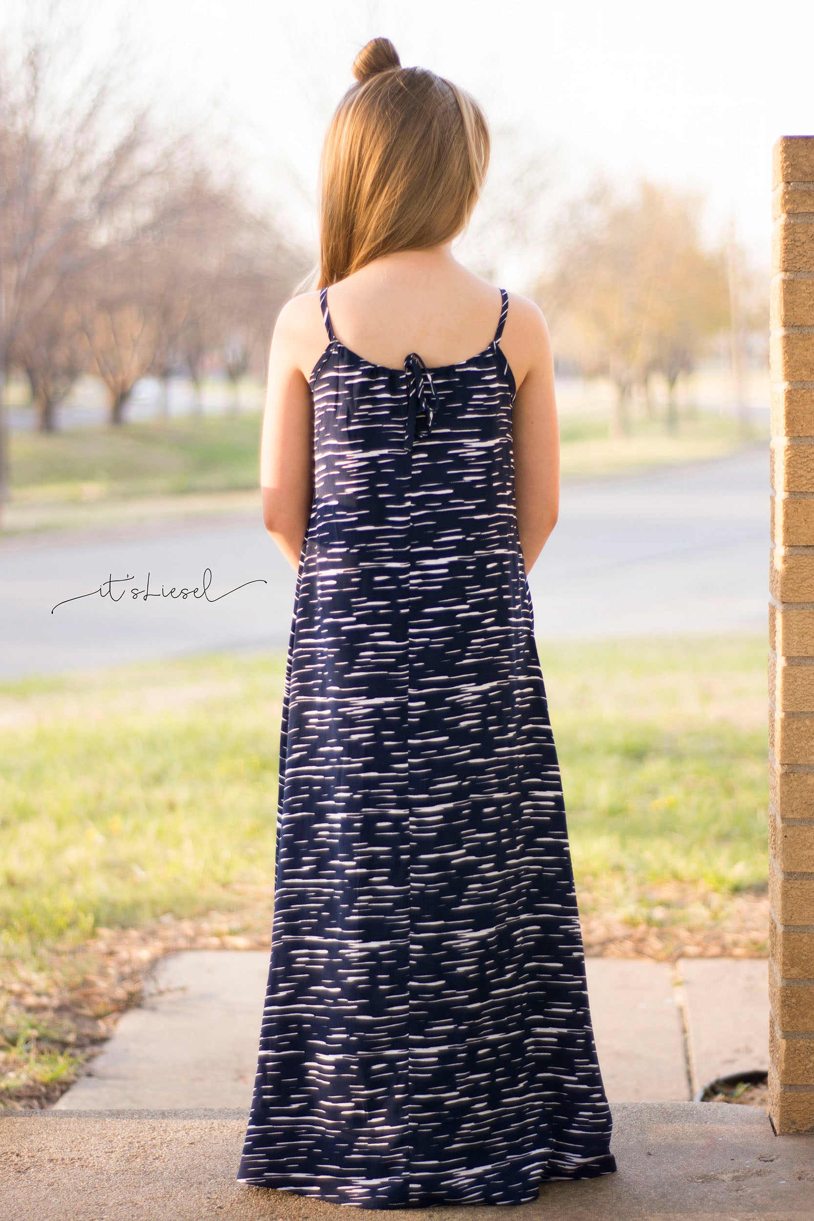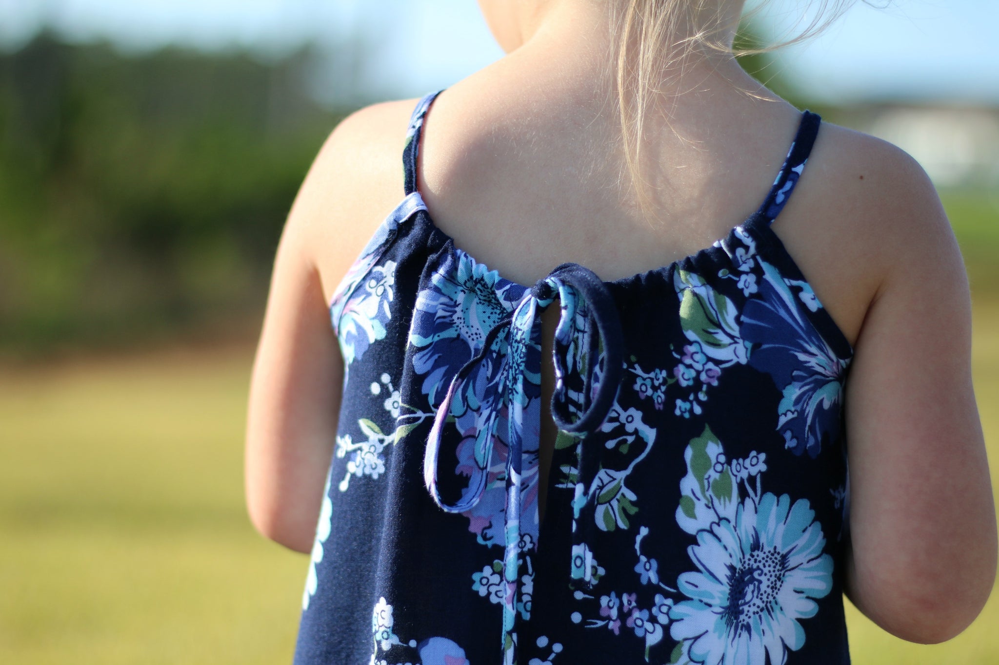 Effortless elegance and comfort arrive hand-in-hand with this wonderful summer classic. Featuring an A-line silhouette with delicate drop down ties and a slightly opened back, this dress is a flattering warm-weather staple. Create a simple flowing sundress, or take it up a notch with ornate bead details and trims to really give your dress a unique look.