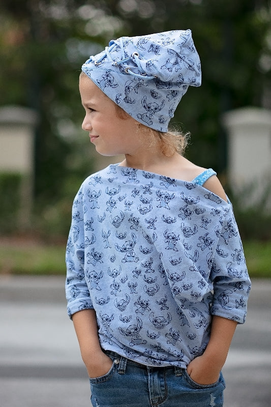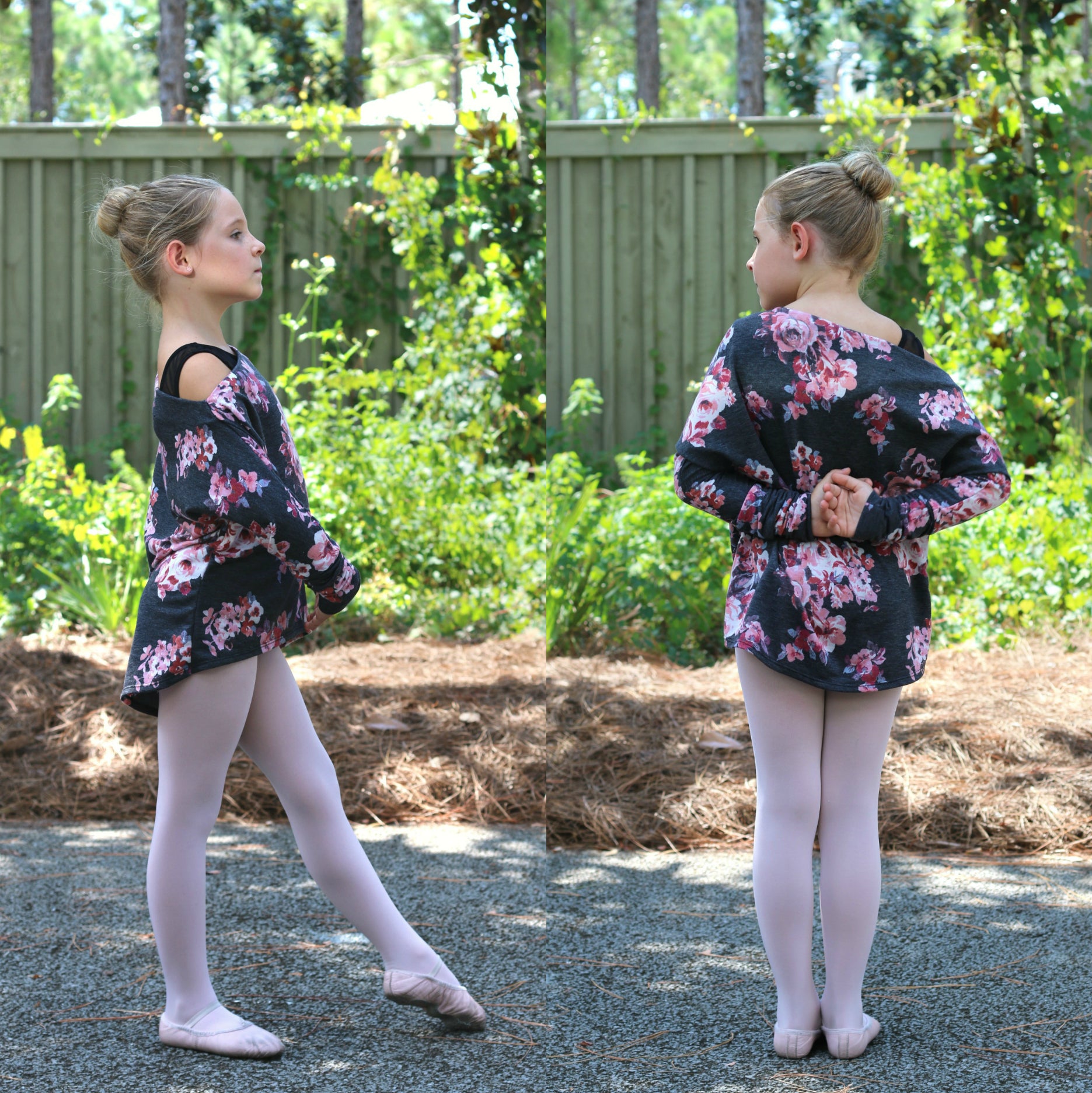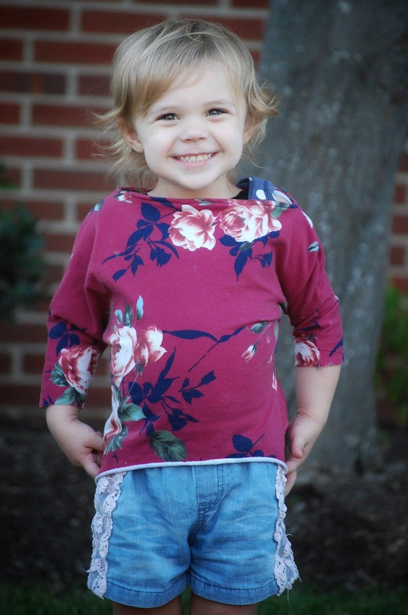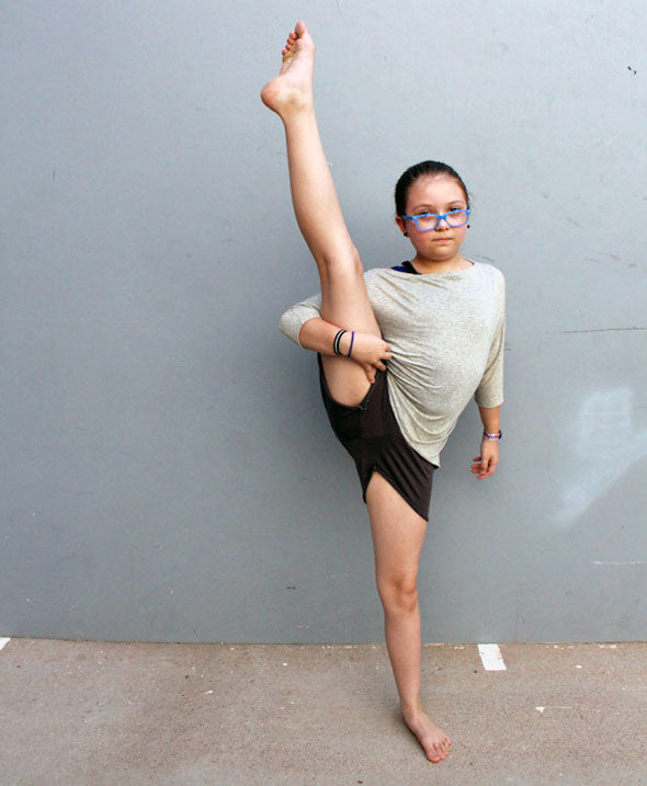 Whether used as a cover-up for dance, or a statement piece in her wardrobe, your girl is sure to adore her stunning Hideaway dolman! Featuring a cozy off-the shoulder neckline, optional straps, and fitted long-sleeve cuffs, this pattern will have her strutting confidently into the studio, or snuggling up with her favorite book to read! Not to worry--with 3/4 and even short sleeve options, the Hideaway is guaranteed to be an around-the-year favorite.