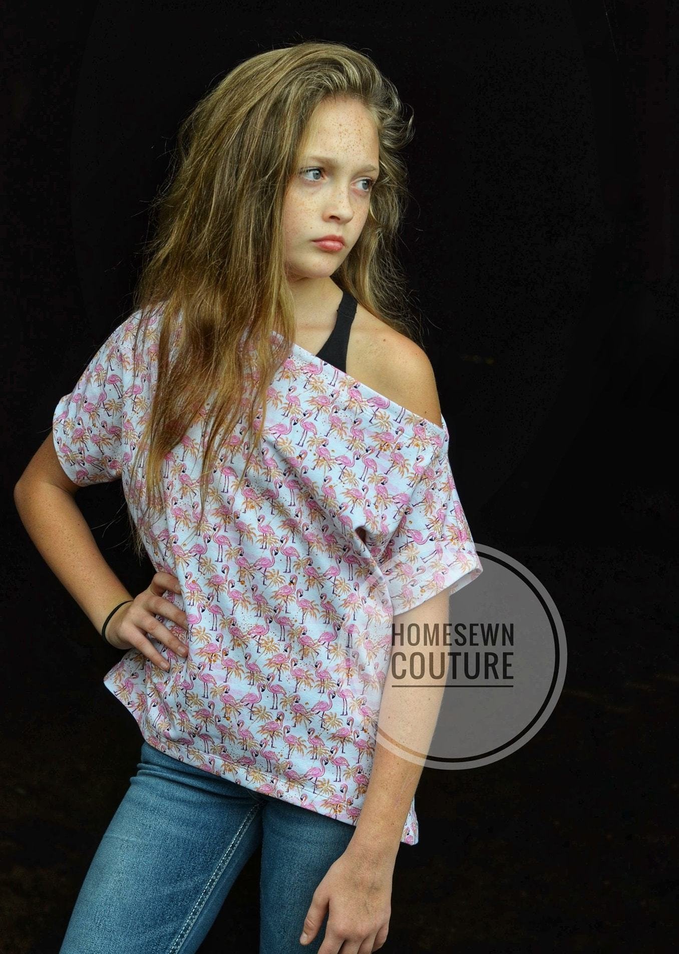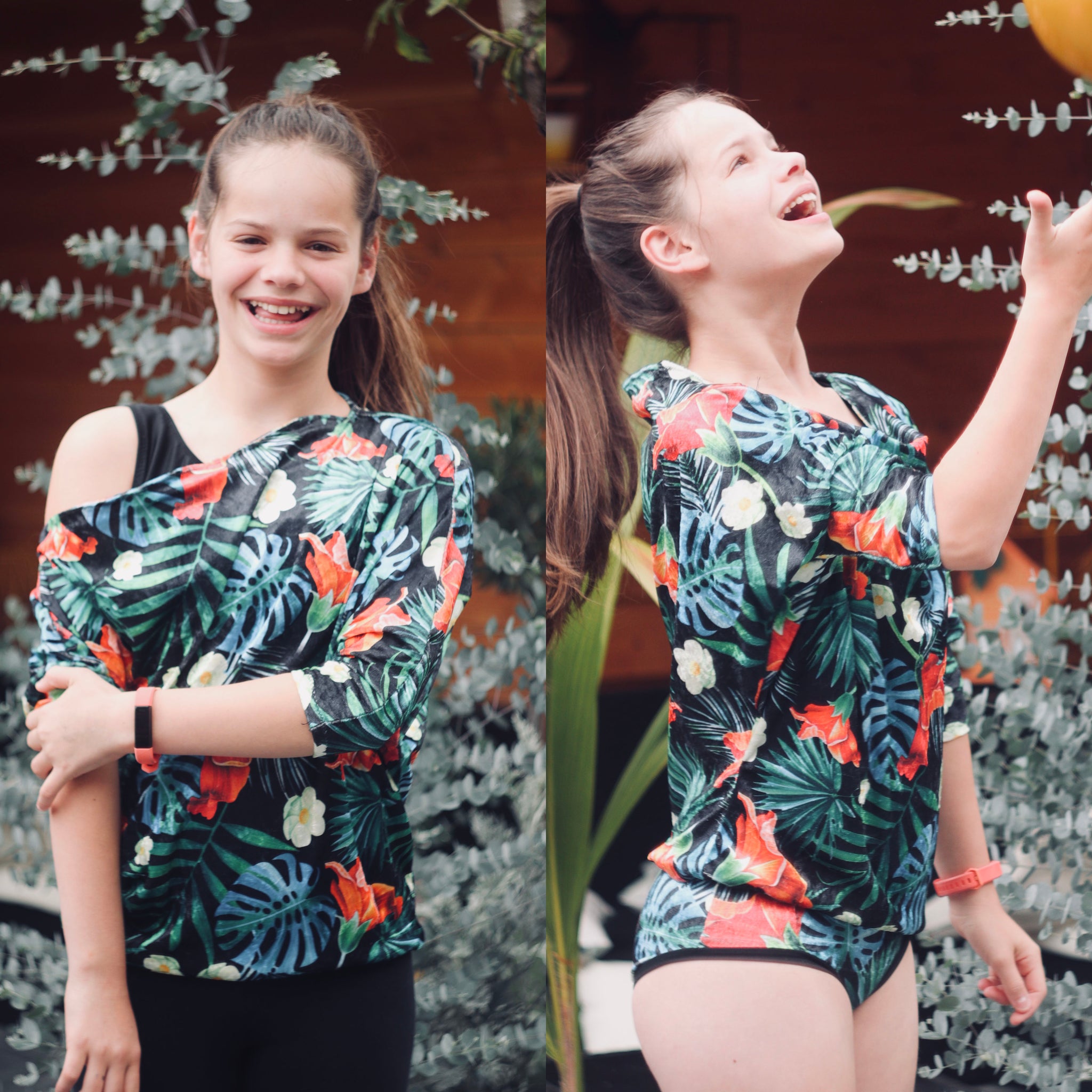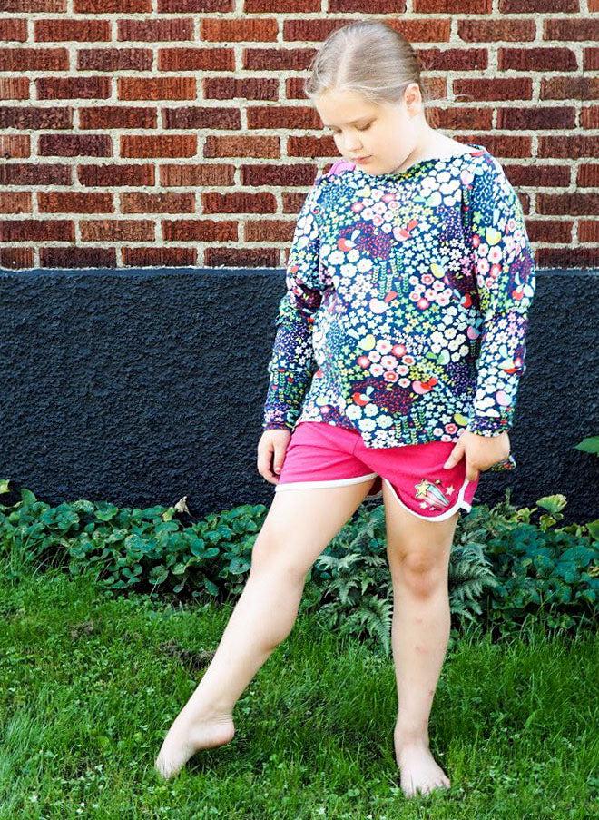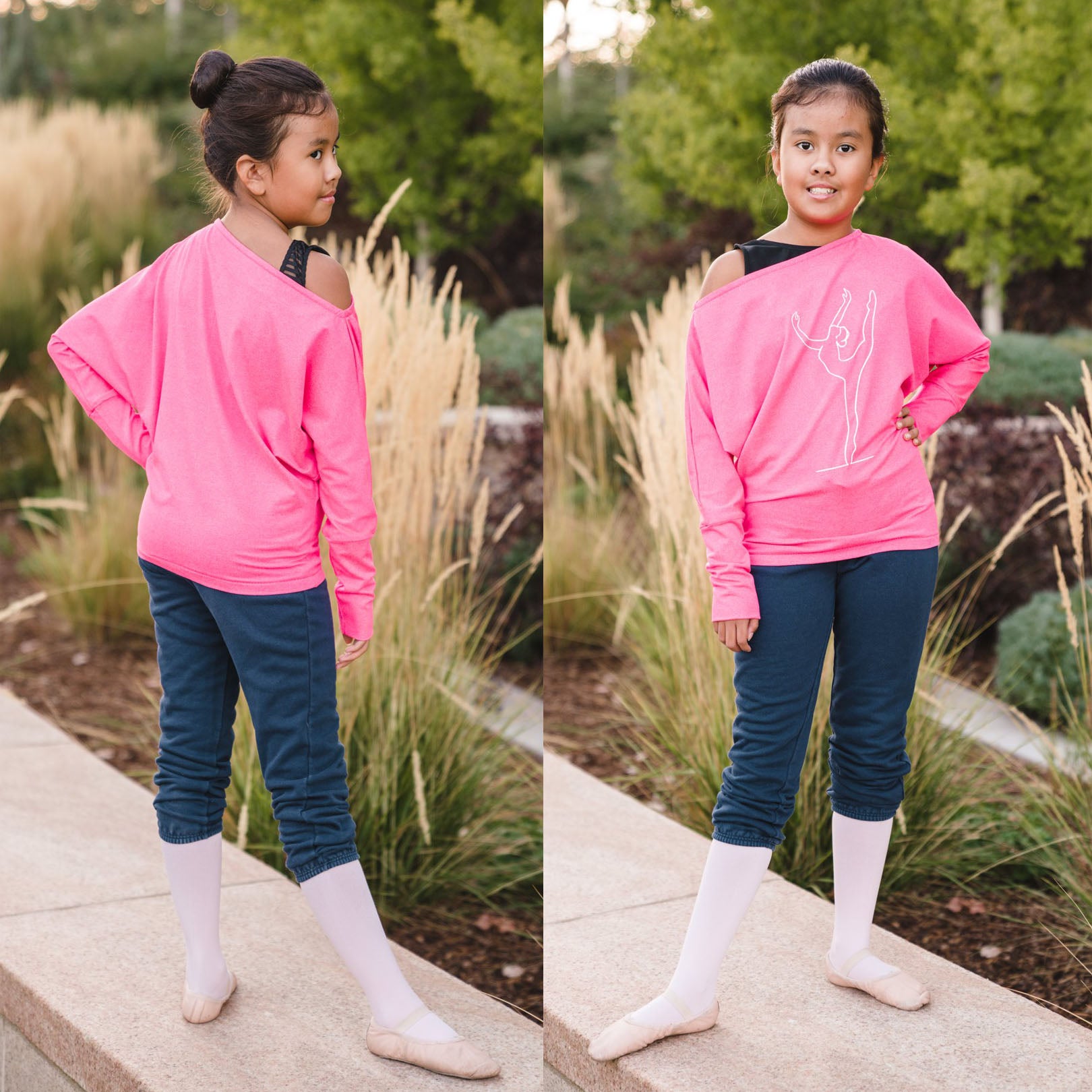 Whether used as a cover-up for dance, or a statement piece in her wardrobe, your girl is sure to adore her stunning Hideaway dolman! Featuring a cozy off-the shoulder neckline, optional straps, and fitted long-sleeve cuffs, this pattern will have her strutting confidently into the studio, or snuggling up with her favorite book to read! Not to worry--with 3/4 and even short sleeve options, the Hideaway is guaranteed to be an around-the-year favorite.