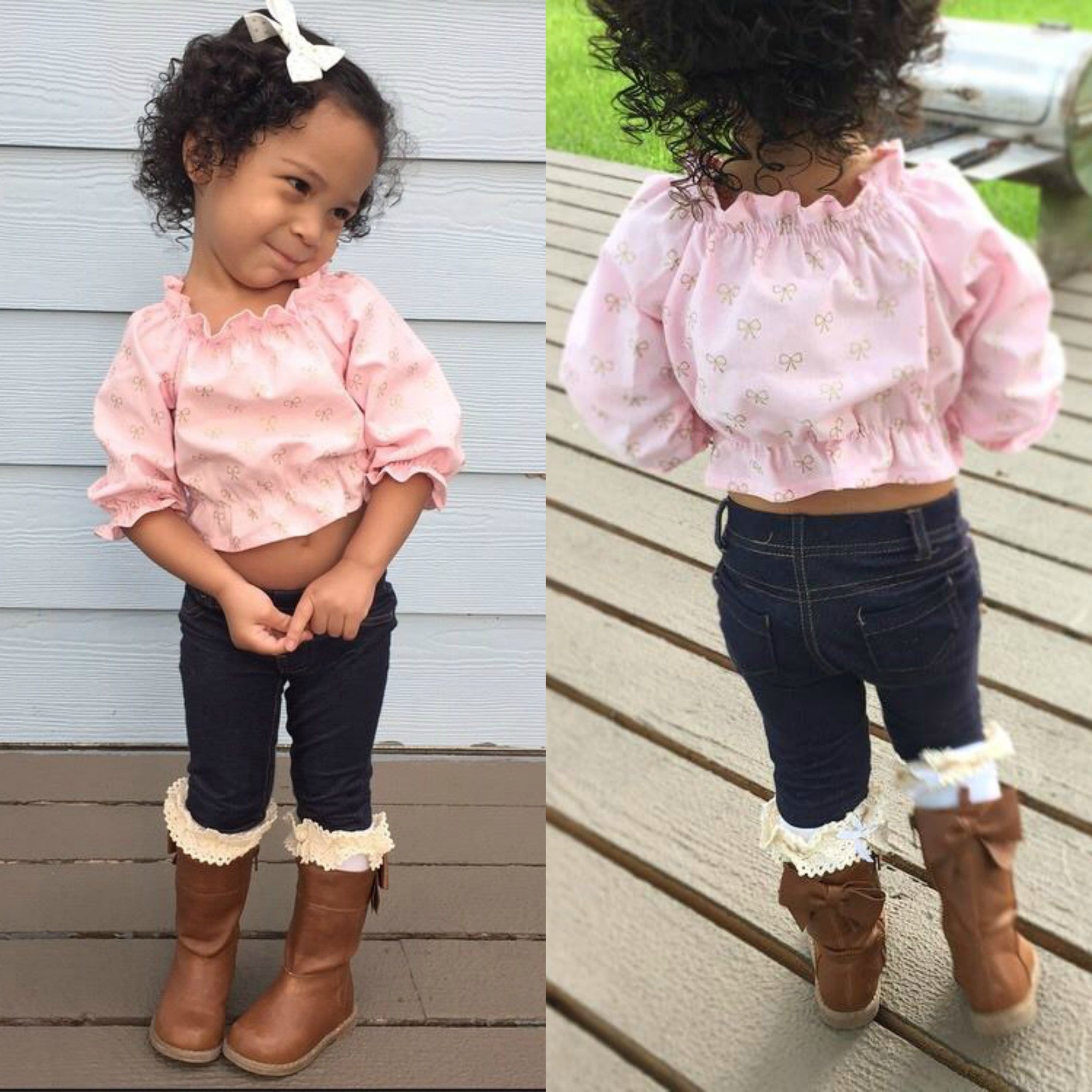 The Gypsy Top is a peasant style top with a sweet ruffle neckline and sleeves. This top is perfect for every season...create a crop top for those hot summer days, a fun mid-length top for cooler fall days, or a hip length top for chilly winter days. It can be made with short, 3/4 length or long sleeves and looks adorable paired with the Festival Skirt or Coachella Shorts!