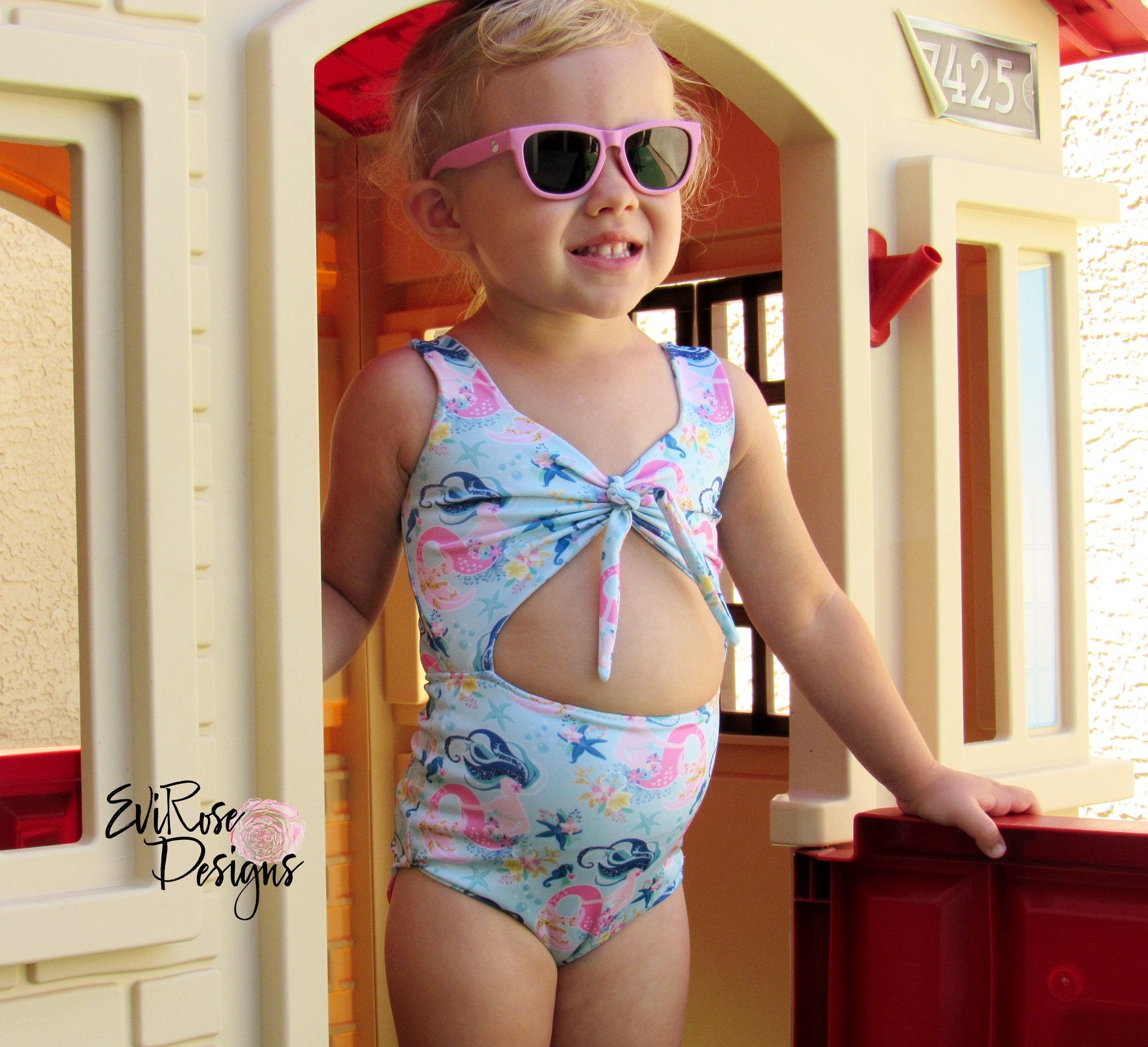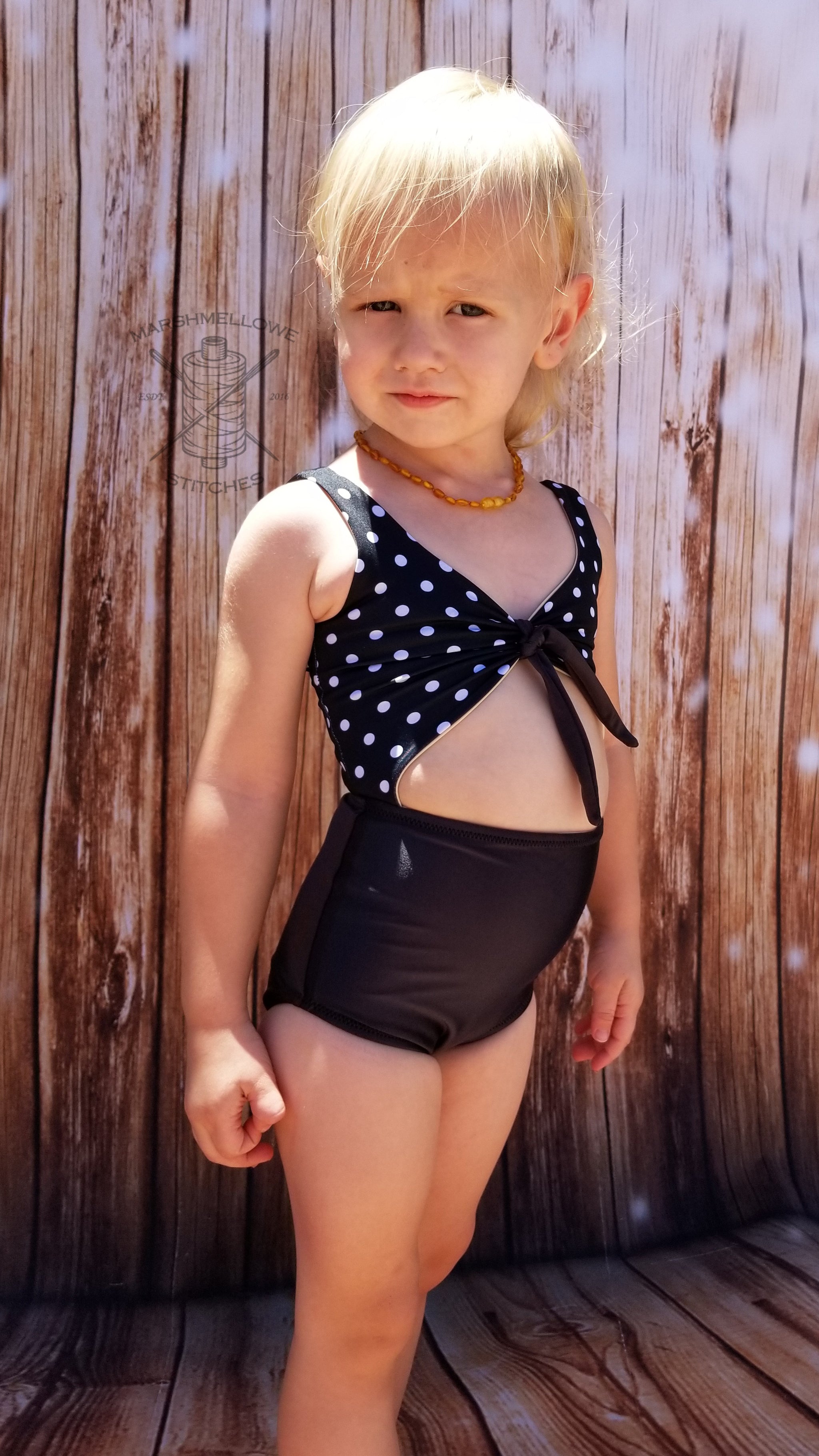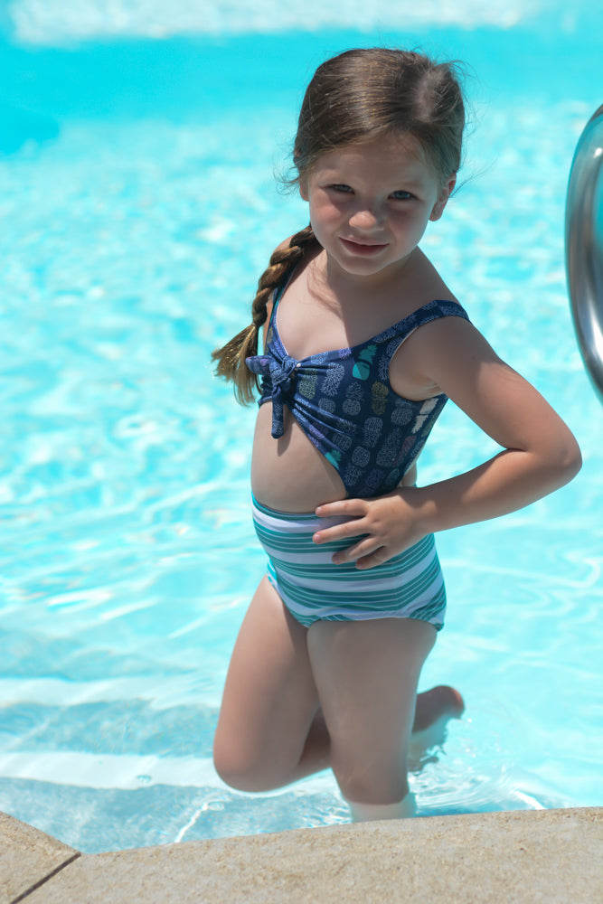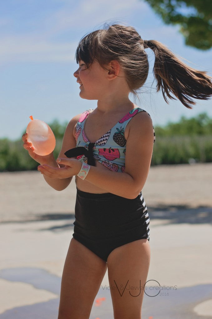 Make a splash this summer with Striped Swallow Designs' first swimsuit pattern, Into the Blue! This beautiful monokini is attached at the sides, and offers both an open and full back, along with charming high-waisted bottoms and a sweet ruched bodice. Give the bodice the finishing touch with a simple band, or a cute knotted front!