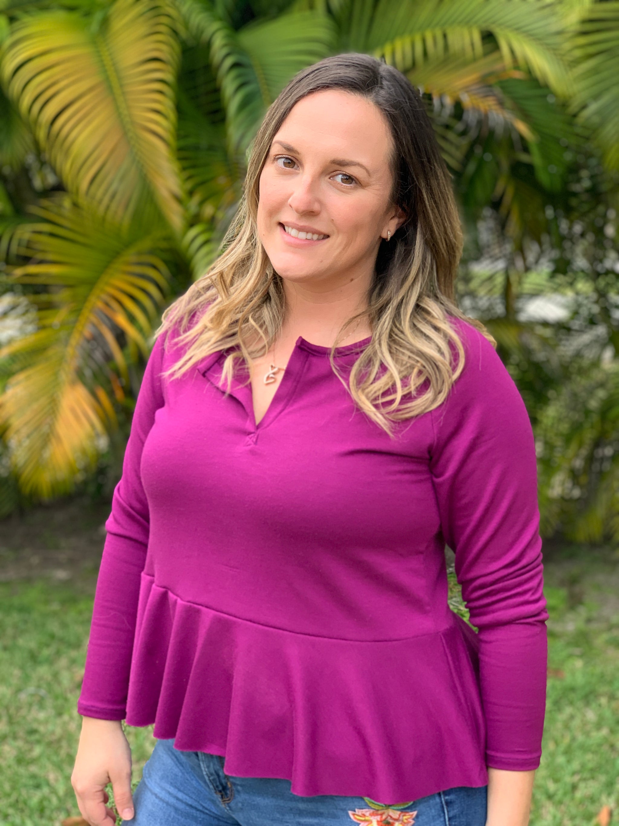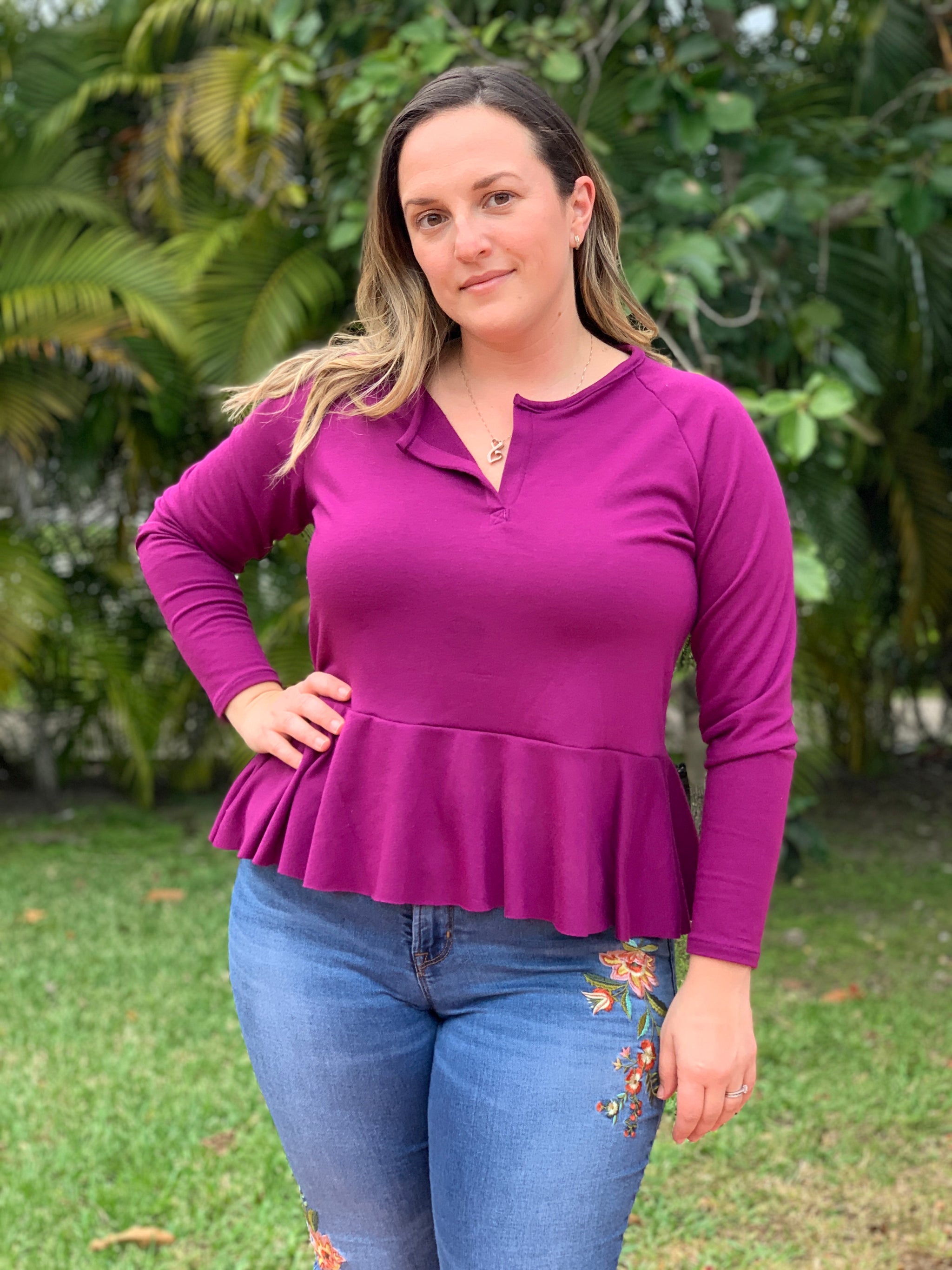 Life is sweet in the Sweetbriar. Pretty and comfortable, the Sweetbriar is cut with a henley neckline and trimmed with a sweet peplum for a feminine finish. This raglan style top has 3 sleeve options and the bodice can be made without the peplum for a simpler look.