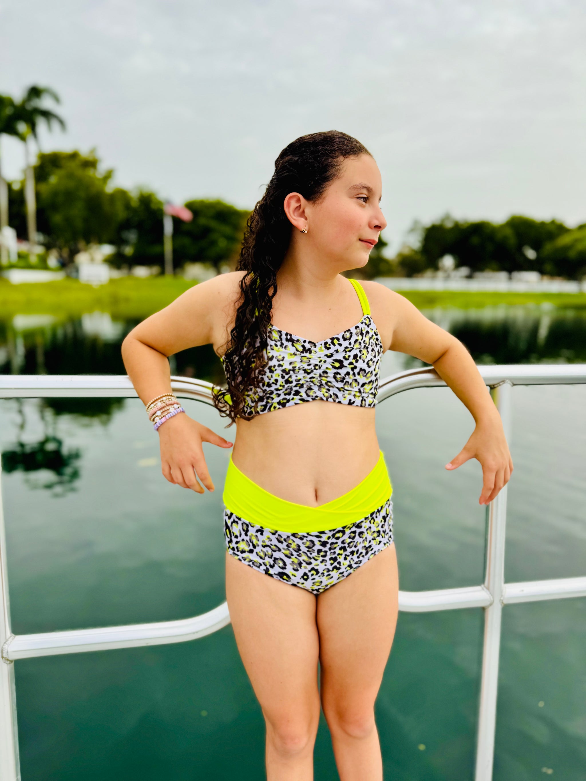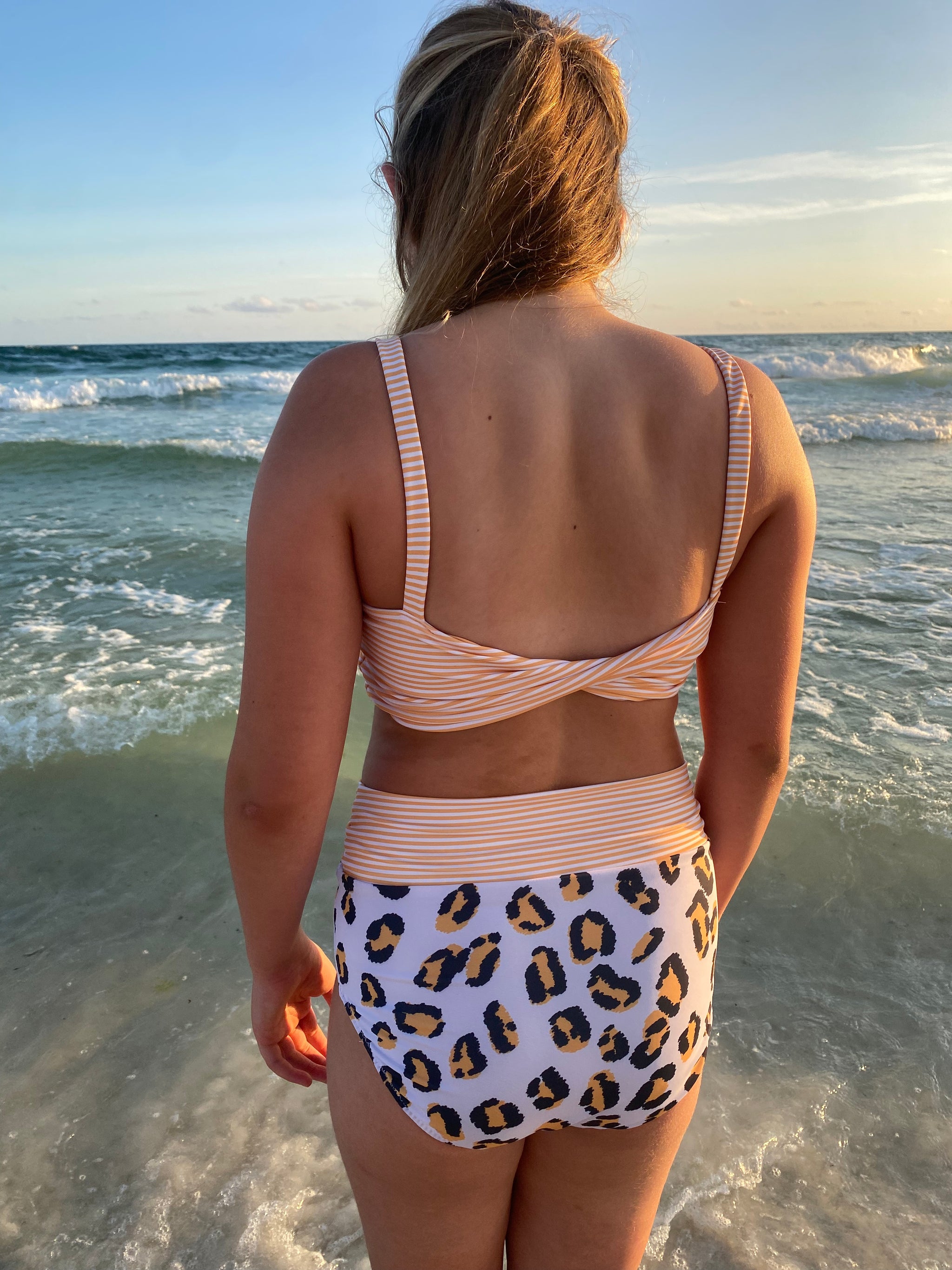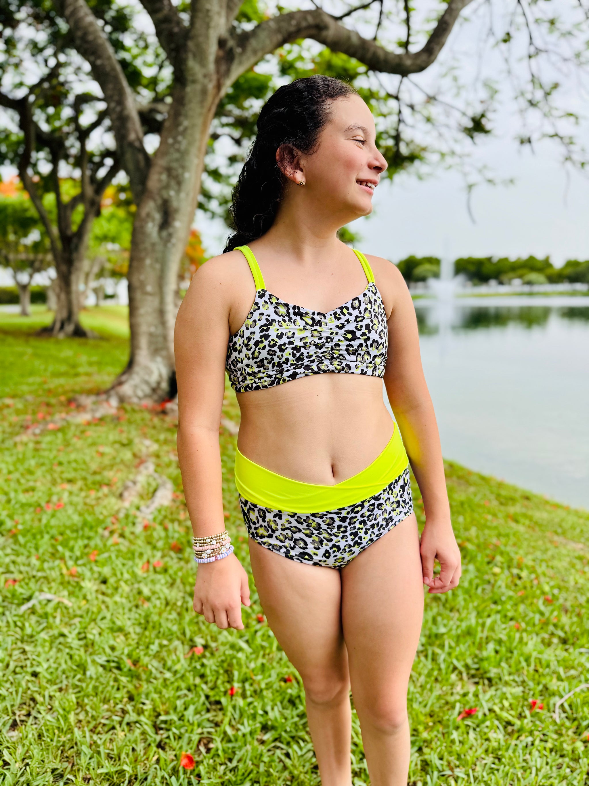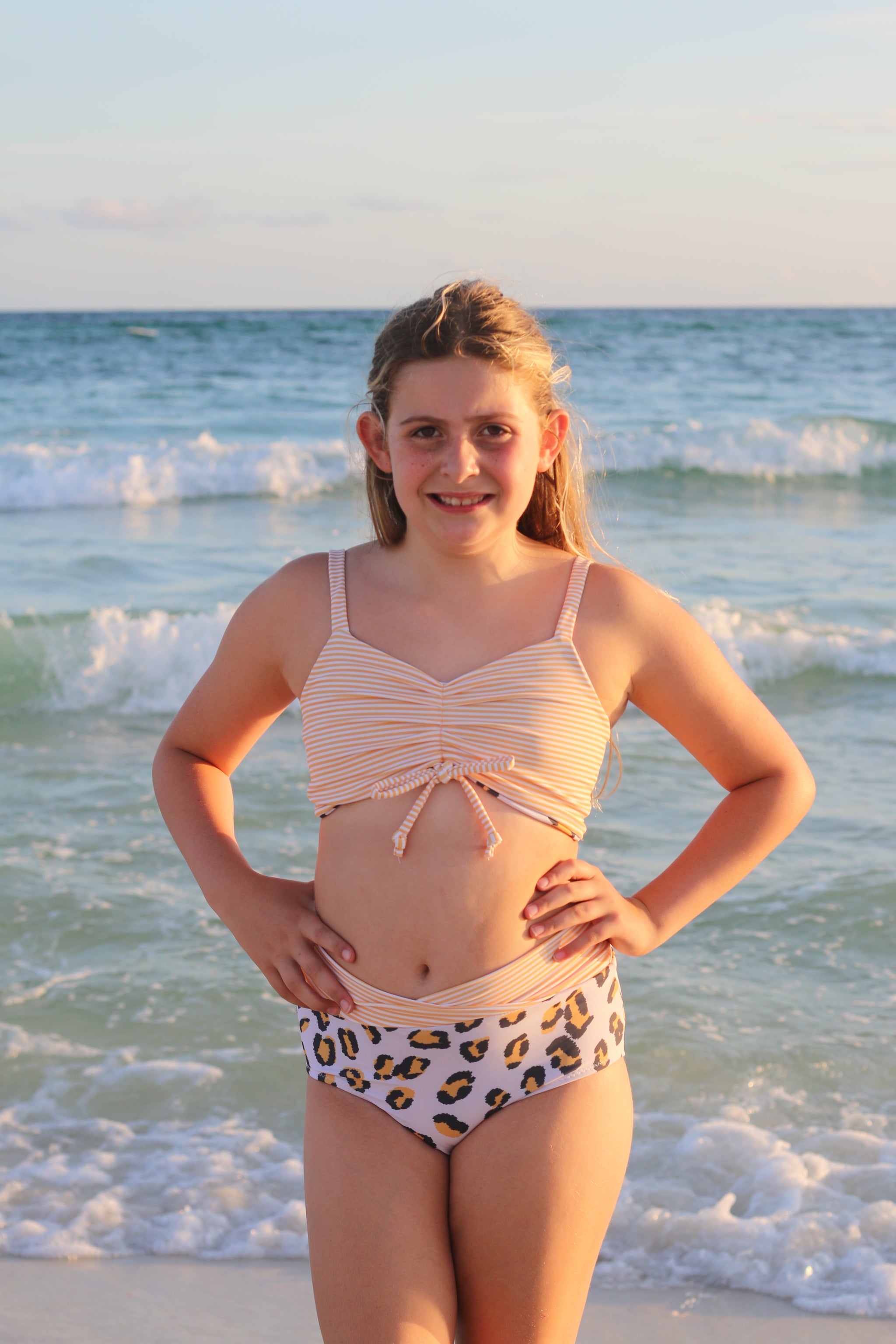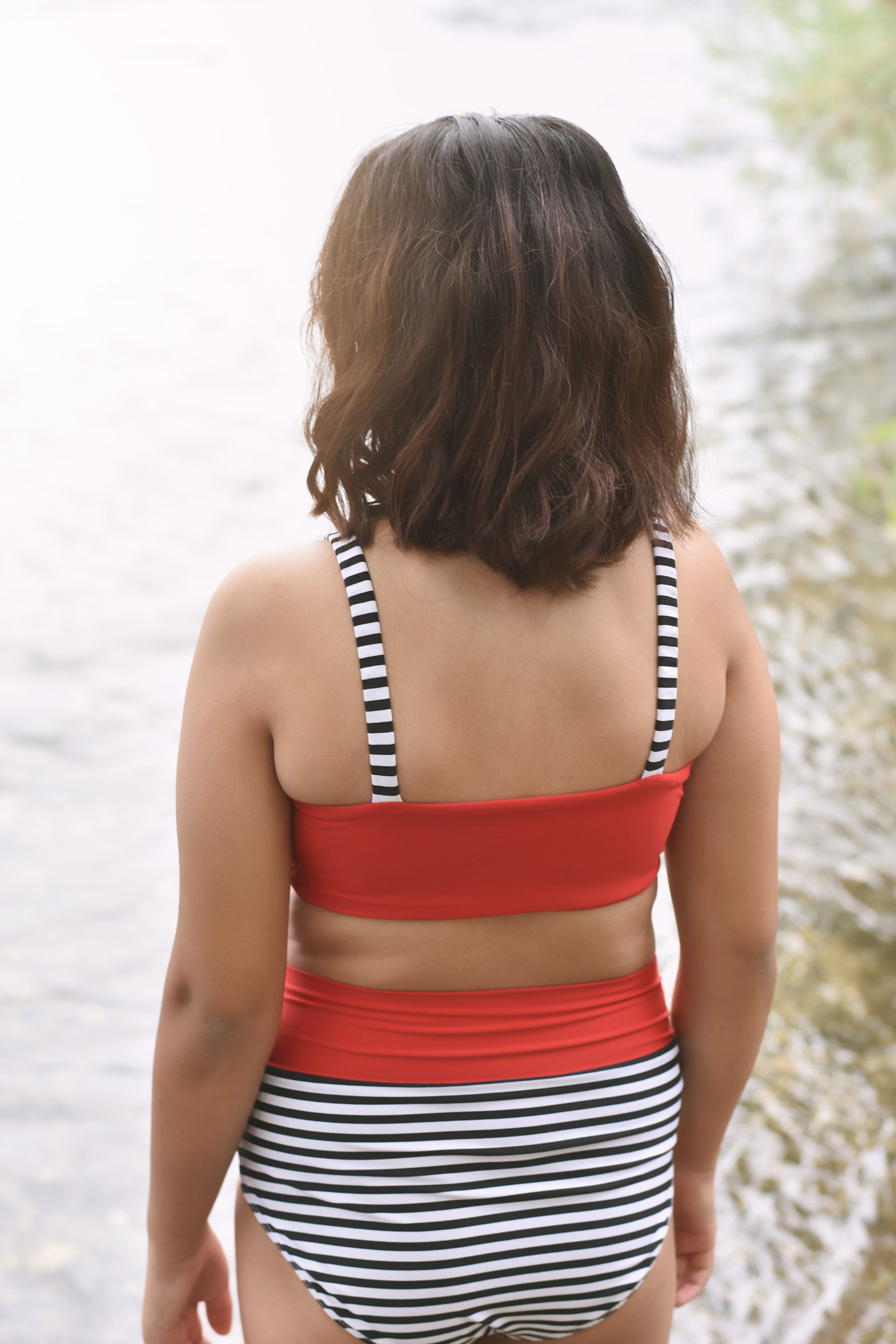 The Cali Top features a cinched bodice, either solid fabric or color blocked with optional ties. Add the sweet ruffle detail to the strap and/or a twist back with two different fabrics for added fun. With tons of options, this top offers the flexibility to take if from the dance class to all your water adventures. Pairs excellent with the Ciara Bottoms or Marlow Shorts shown paired in these photos.