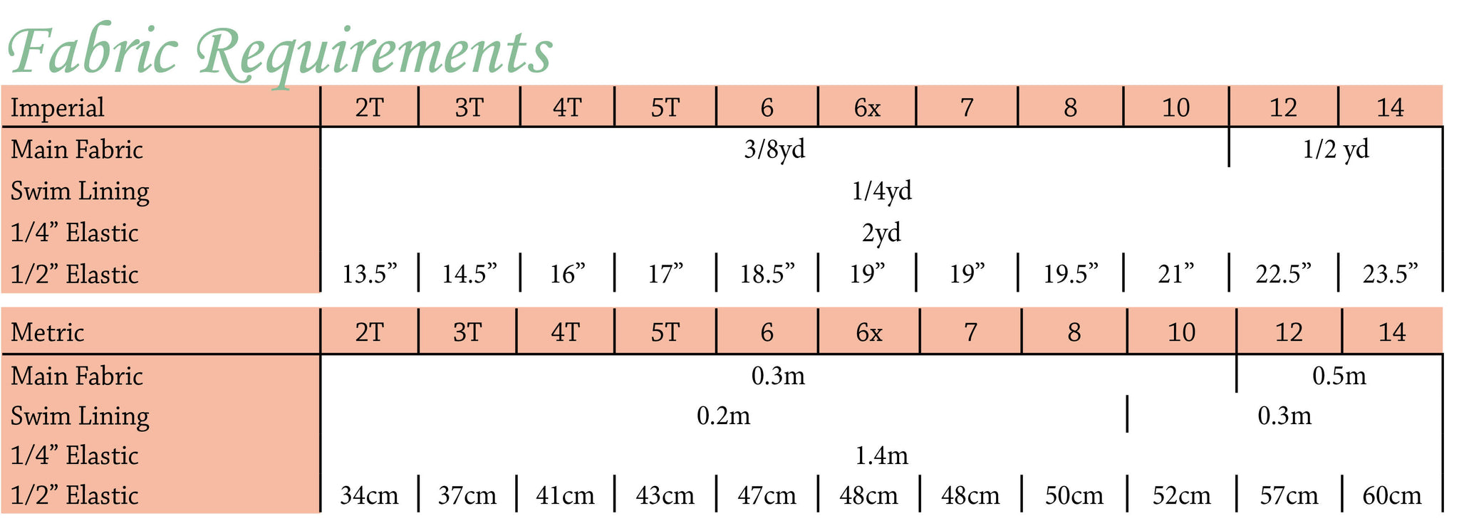 1/4” and 1/2” elastic (see fabric requirements) and lining fabric