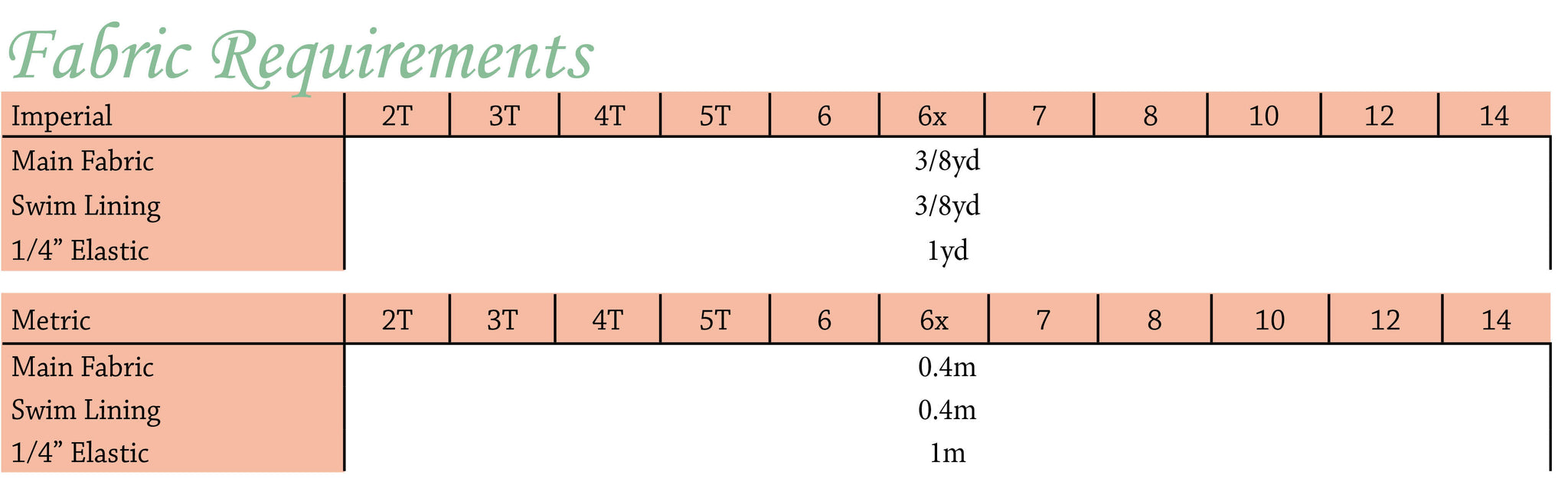 1/4” elastic (see fabric requirements) and lining fabric