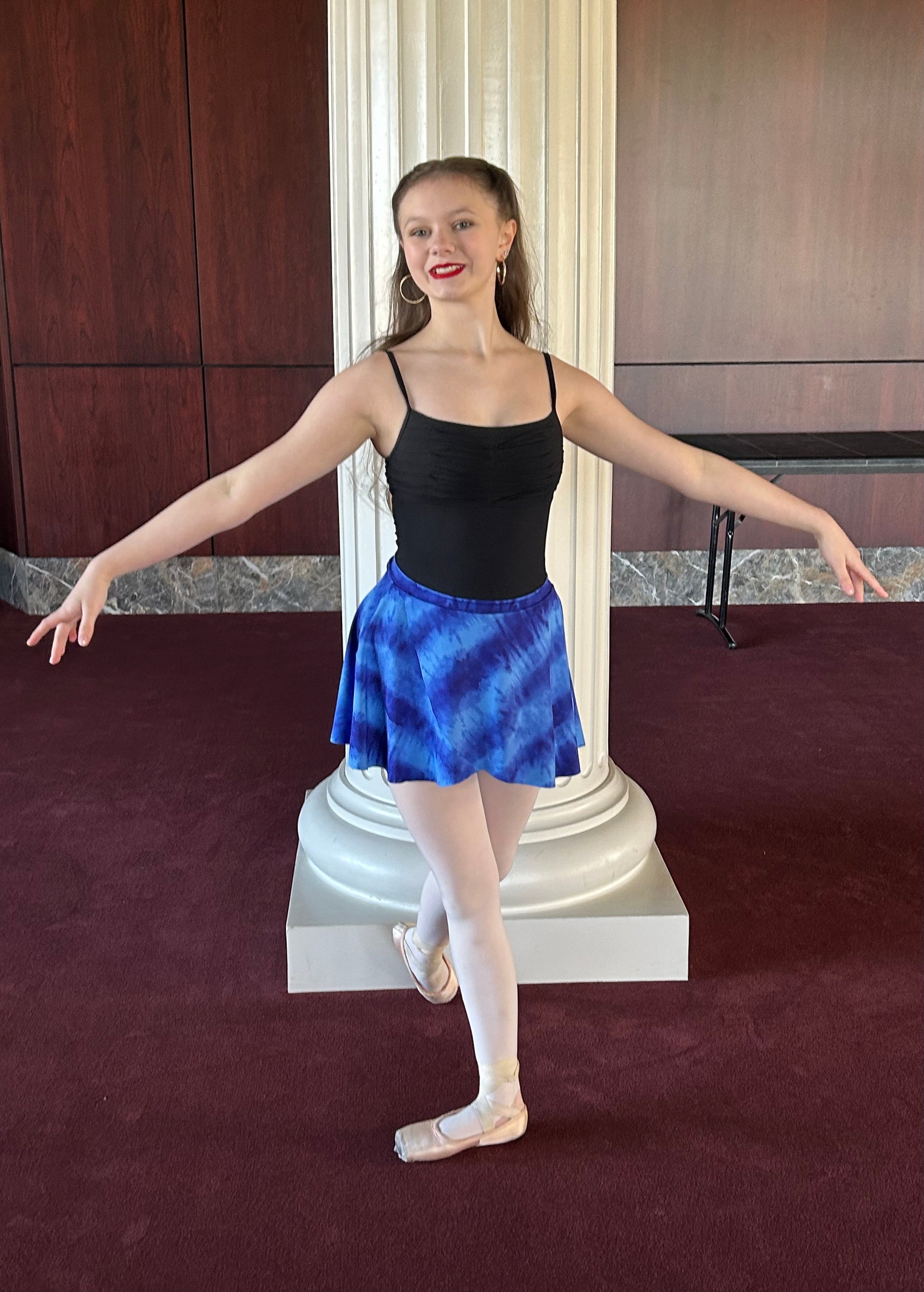 Made for moving through your favorite dance class, the Pirouette Skirt features a pull-on style knit waistband. View options include a sweet flared design, a-line or tulip skirt option for added dimension.