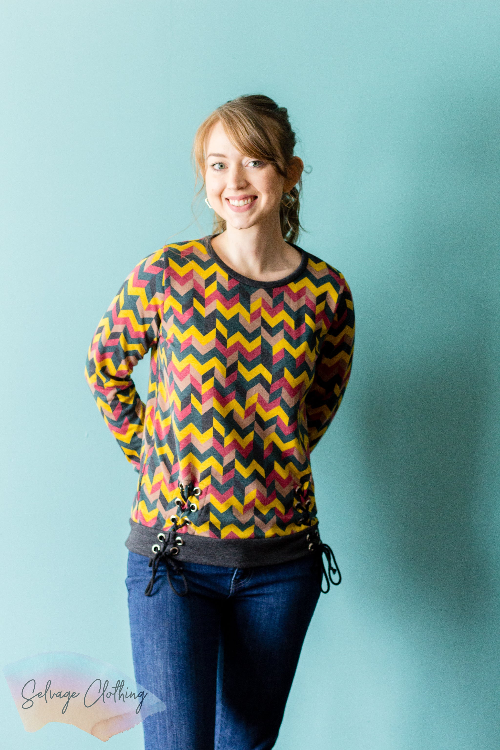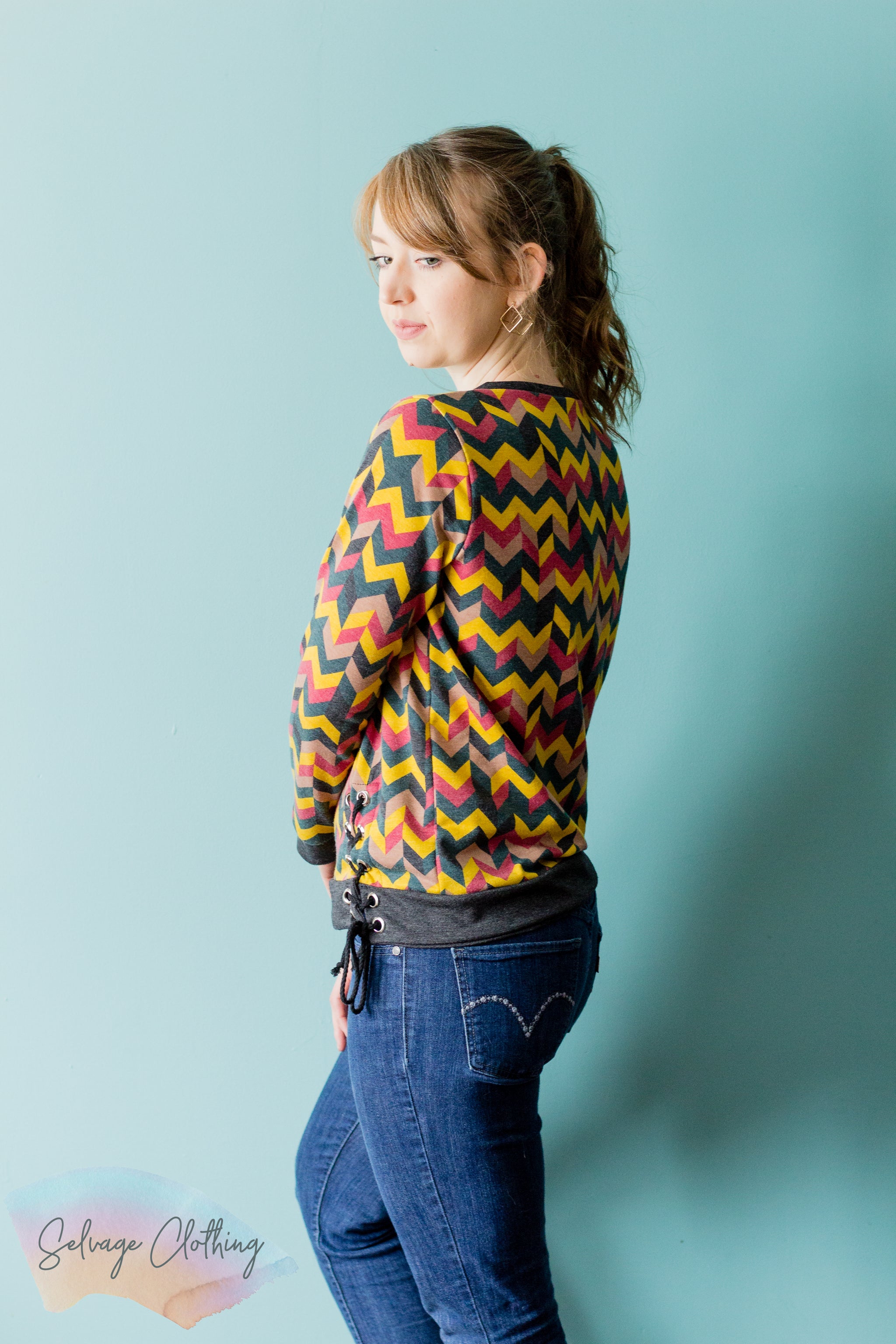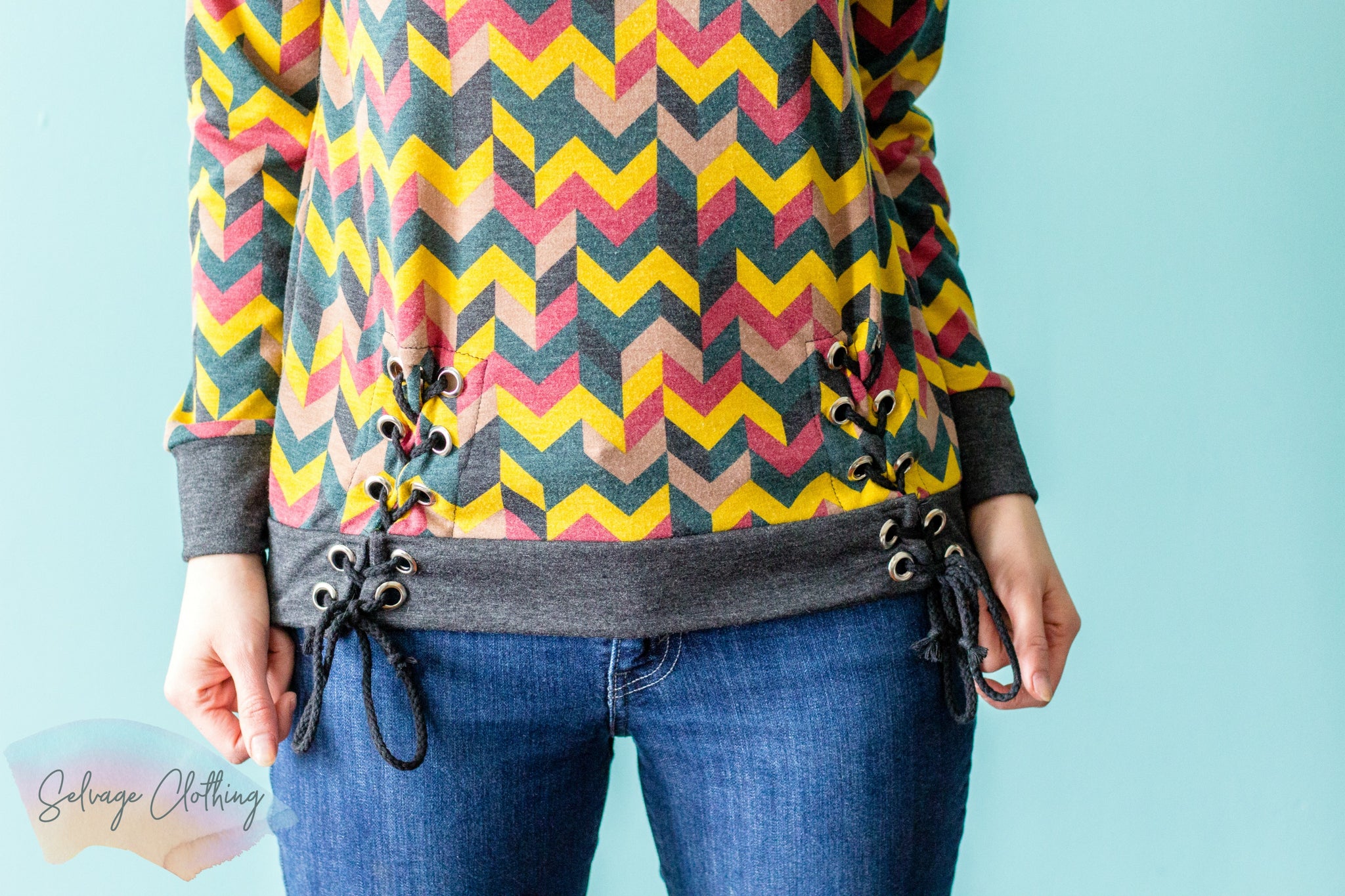 Note: When using a sweater knit the split lining will need to be a more stable fabric to support the grommets.