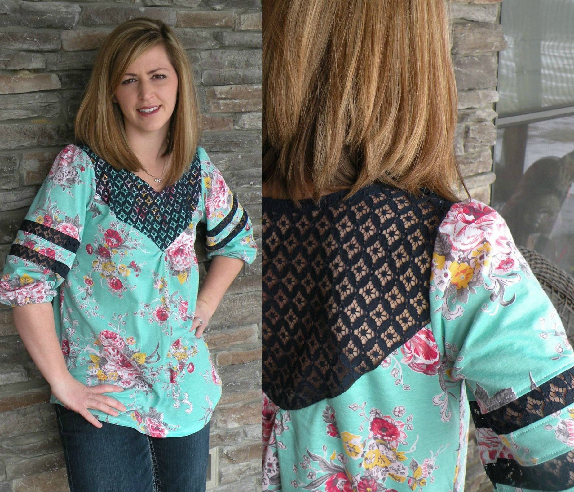 The Wanderer Tunic can be made with woven, but works best with fabrics that have a soft drape. You may also use knit fabrics for the tunic pieces/sleeves and lace for the yoke.